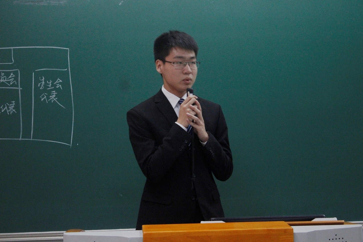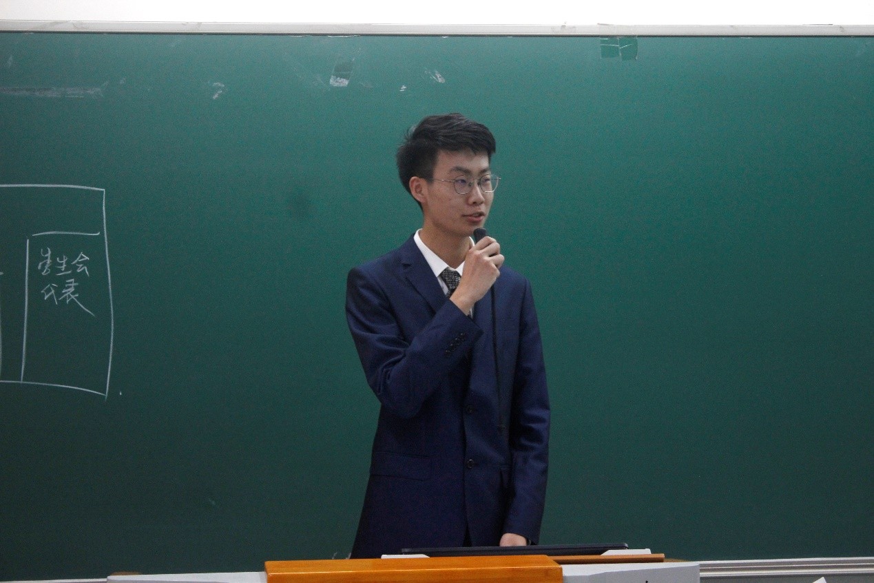 学生会选举结束后,大会选举新一任财神在线官网常务代表委员。候选人王子元作选举演讲,介绍了过去参与的志愿工作与社会实践活动,以及为外院师生权益所做出的努力,他对担任常代表后的工作做出了详细的计划,并接受了参会师生的提问与质询。