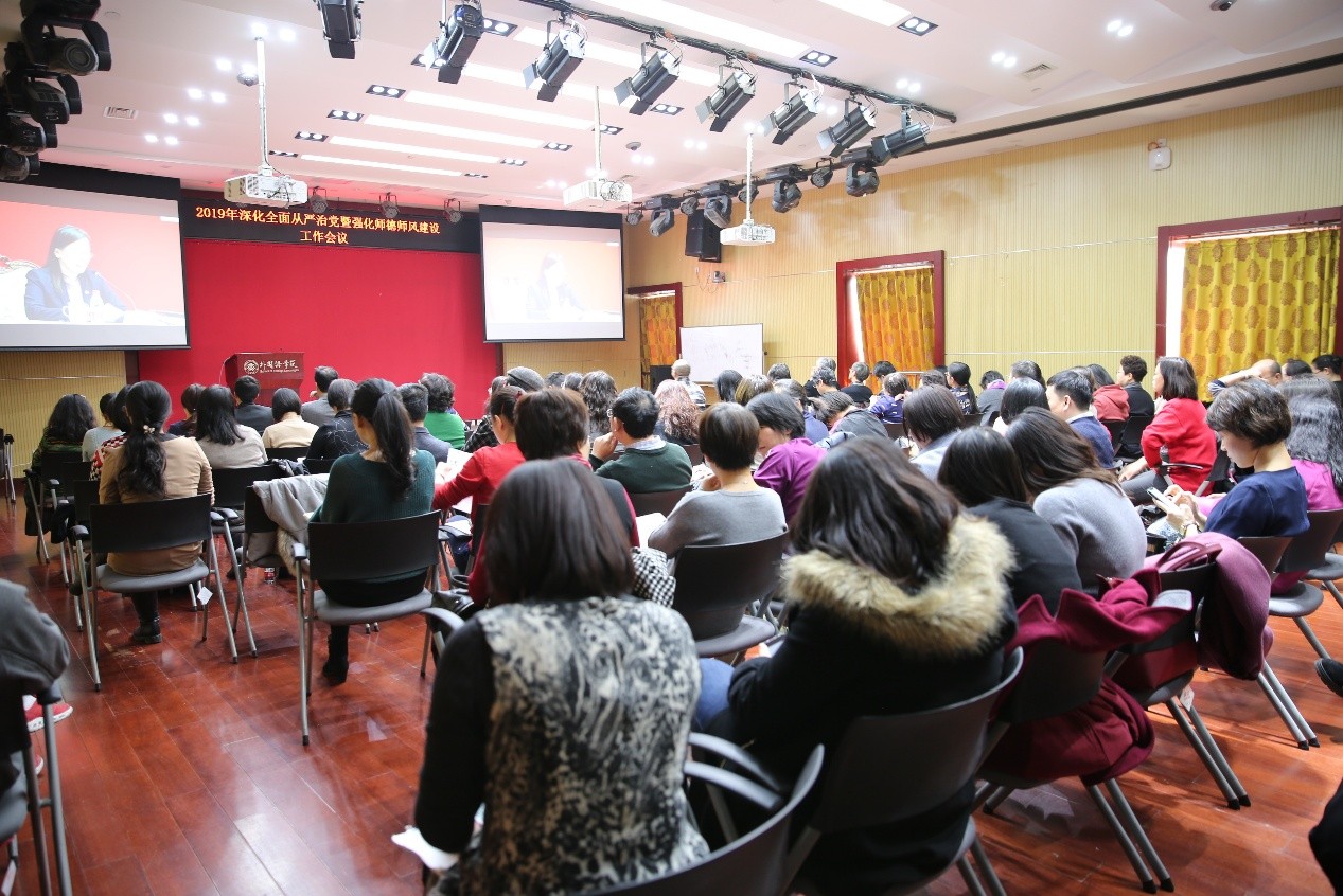 本次会议是学校为加强全面从严治党和师德师风建设而开展的重要学习教育活动,学院教职员工在分会场通过视频直播认真听取了报告,全面了解过去一年学校在相关工作中取得的成绩,也深刻认识到当前所面临的深刻变化和严峻考验,明确了下阶段的工作任务和前进方向。与会教师表示会后将继续深入学习和领会会议精神,进一步统一思想、提高认识、强化担当,加强对自身的师德师风要求,做“四有”好老师。
