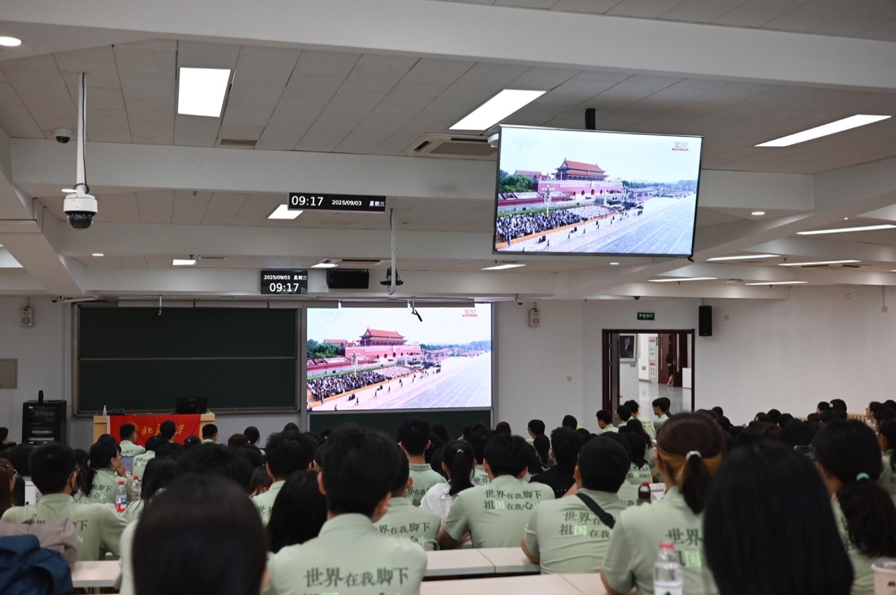财神在线官网组织师生集体观看纪念中国人民抗日战争暨世界反法西斯战争胜利80周年大会