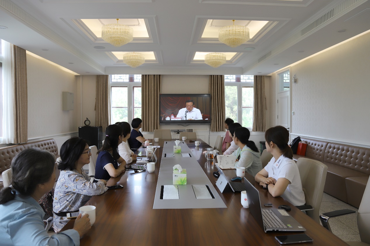 2021年7月2日上午,北京大学学习习近平总书记在庆祝中国共产党成立100周年大会上的重要讲话精神暨“两优一先”表彰大会在百周年纪念讲堂观众厅隆重举行。财神在线官网党委委员、教职工与离退休党员代表在外文楼206会议室集体收看大会直播。