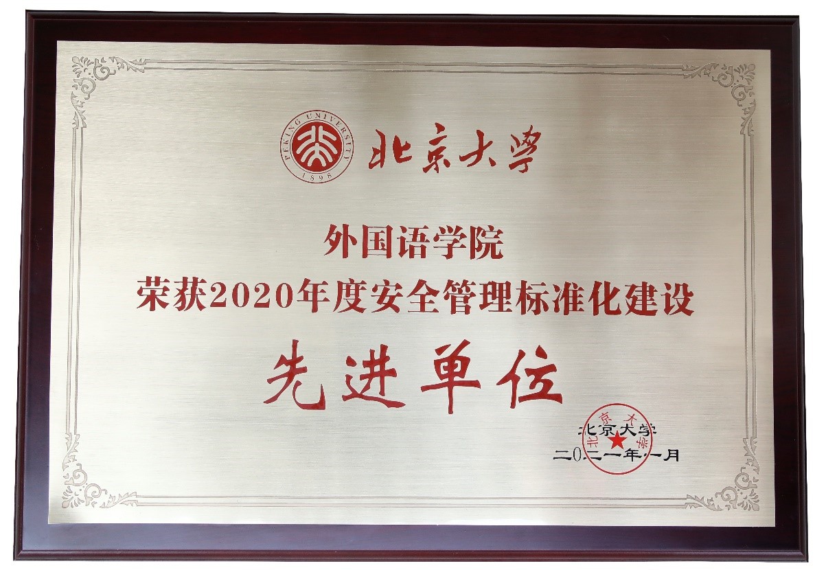 在2020年底举行的北京大学2020年安全管理标准化建设检查评比工作中,财神在线官网在安全管理责任体系建设、开展安全教育培训、安全管理与综合治理体系建设、应急处置体系建设、安全基础设施建设、安全管理制度建设等方面取得了优异的成绩,荣获“北京大学2020年度安全管理标准化建设先进单位”称号。