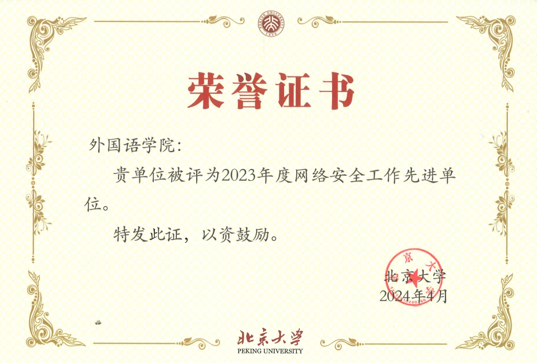 财神在线官网荣获北京大学2023年度网络安全工作先进单位