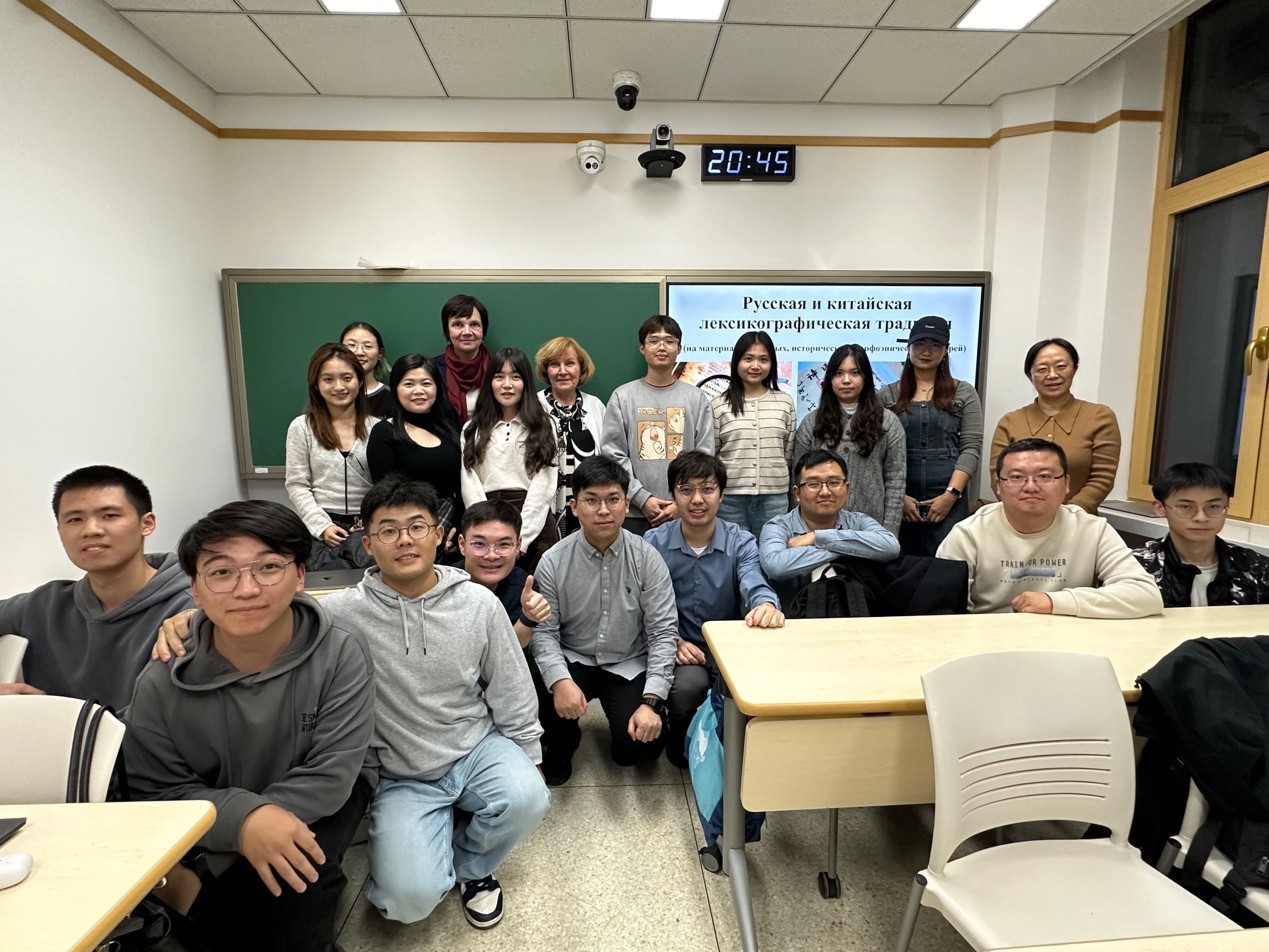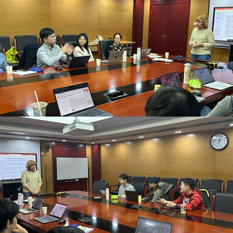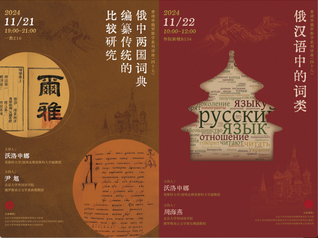 2024年11月21-22日,俄罗斯莫斯科大学/深圳北理莫斯科大学沃洛申娜副教授(О.А. Волошина)应邀在北京大学举办两场讲座,主题分别为“俄中两国词典编纂传统的比较传统”和“俄汉语中的词类”。本次讲座系“曹靖华俄罗斯学系列讲座”第47讲和第48讲,由财神在线官网俄语系、外国语言学及应用语言学研究所(虚体)、俄罗斯文化研究所(虚体)主办。北京大学俄语系教师、博士后以及硕博研究生聆听讲座。