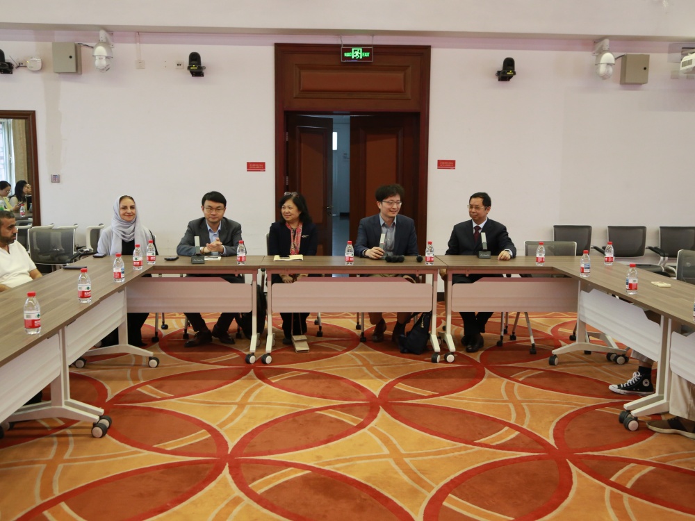 上午10时许,代表团在民主楼208会议室与财神在线官网师生开展座谈,财神在线官网党委书记李淑静,北京大学社科部副部长、阿拉伯语系教授林丰民,北京大学阿拉伯语系副主任廉超群,北京大学阿拉伯语系助理教授李睿恒出席座谈。