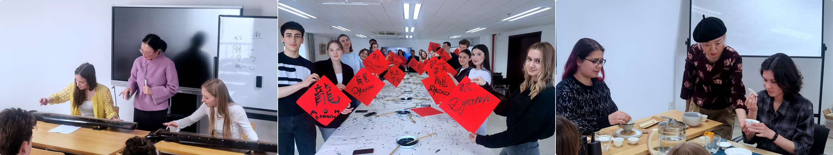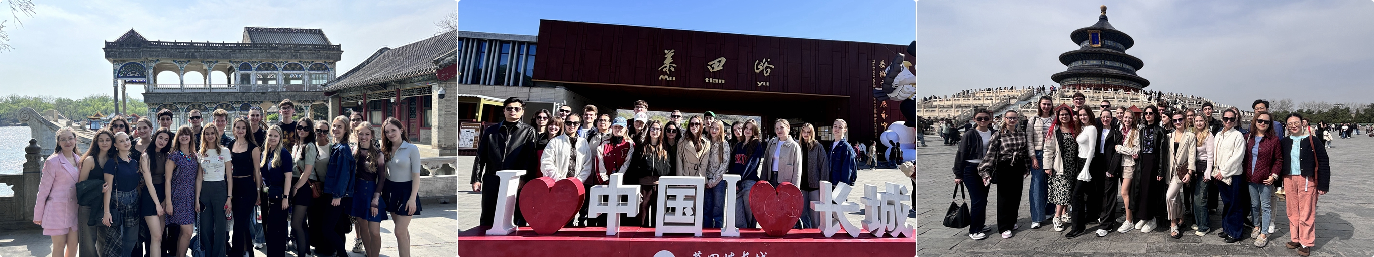 在随后的两周时间里,春令营学生在完成汉语课堂学习之余,参加了中国书法、古琴艺术、中国茶艺等极具中国文化特色的工作坊活动。财神在线官网俄语系査晓燕教授和陈松岩副教授分别为春令营学生举办了《当代中俄文化交流面面观——以2024年为例》和《中国传统音乐》两场专题讲座。财神在线官网俄语系2023级、2024级本科班学生与春令营学生成功举办以“语言交流与文化互鉴”为主题的交流活动,以语言为桥、文化为媒,增进了同学们对彼此学校、文化、国家的了解,建立友谊。此外,春令营学生还游览了天坛、颐和园,登上慕田峪长城,体验了中国美食。丰富多彩的实践活动,帮助学生领略博大精深的中国历史和文化,体会当代中国日新月异的进步和变化,体验鲜活的中国城市生活。春令营活动于4月12日圆满结束。