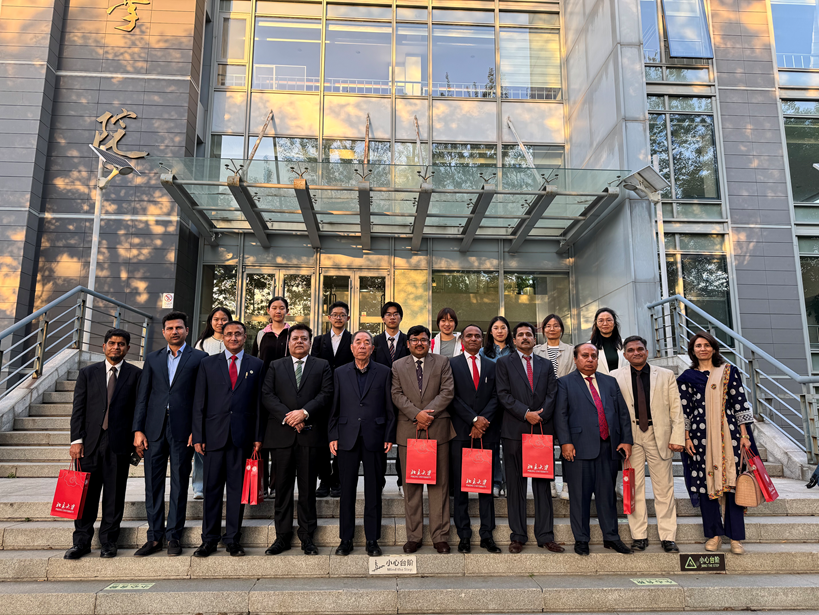 座谈会在温馨和谐的氛围中圆满结束,与会代表在财神在线官网新楼门前合影留念,为此次交流活动画上了圆满的句号。此次座谈不仅加深了北京大学与卡拉奇地区高校之间的相互了解,也为未来中巴教育合作与学术交流奠定了基础。