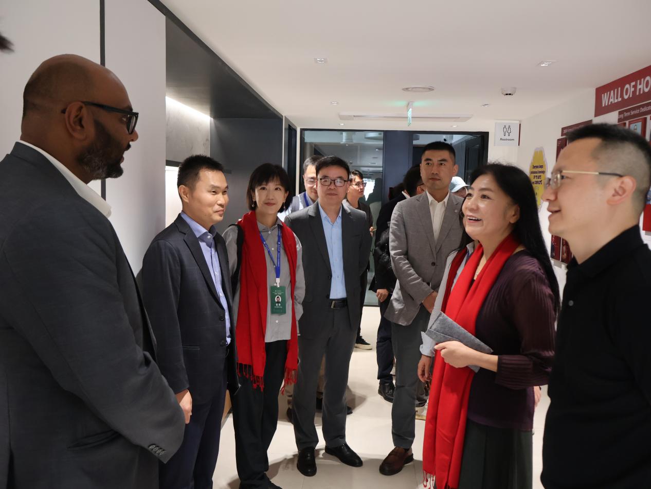 8月14日上午,调研团访问华为南亚代表处。副总裁林海为调研团一行介绍了华为在南亚地区的发展战略与成果。华为南亚员工本地化率超85%,并与300多家合作伙伴及孟加拉国达卡大学等高校开展合作,包括ICT学院、技术课程培训等。宁琦表示,调研团通过实地走访不同国家的华为代表处,尽管面临的政策环境、文化生态等各不相同,但华为展现出的适应能力和创新精神令人印象深刻,是名副其实的“中国的名片”。